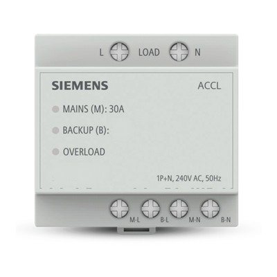 10 Nov Siemens Sinova 30A 1 Phase Automatic Changeover Switch ACCL Facebook Twitter Email Pinterest linkedin WhatsApp WhatsApp Telegram Siemens Sinova 30A 1 Phase Automatic Changeover Switch cum Current Limiter also known as ACCL 1P + N, 240V Ac, 50 Hz Module Width – 4M; where 1M = 18mm Can be mounted in Standard Enclosures and DB Boxes