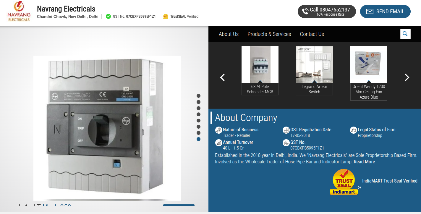 Known for offering a wide selection of MCBs, MCCBs, distribution boards, wires, modular switches, and control devices, Navrang Electricals sources from leading national and international brands. Their strong market presence, deep inventory, and customer-first approach have made them a go-to choice for reliable, on-time electrical supply.