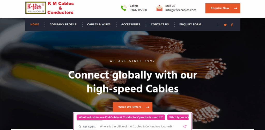 K M Cables & Conductors, based in Alwar, Rajasthan, is a reputed manufacturer and supplier of high-quality wires and cables for residential, commercial, and industrial applications. The company’s product range includes power cables, control wires, aerial bunched cables, and conductors designed to meet national and international standards. Known for its advanced manufacturing facilities, strict quality control, and customer-focused service, K M Cables & Conductors has built a strong reputation among contractors, utility companies, and infrastructure developers. With the capacity to fulfill both specialized and bulk orders, the company remains a dependable name in the wire and cable industry.